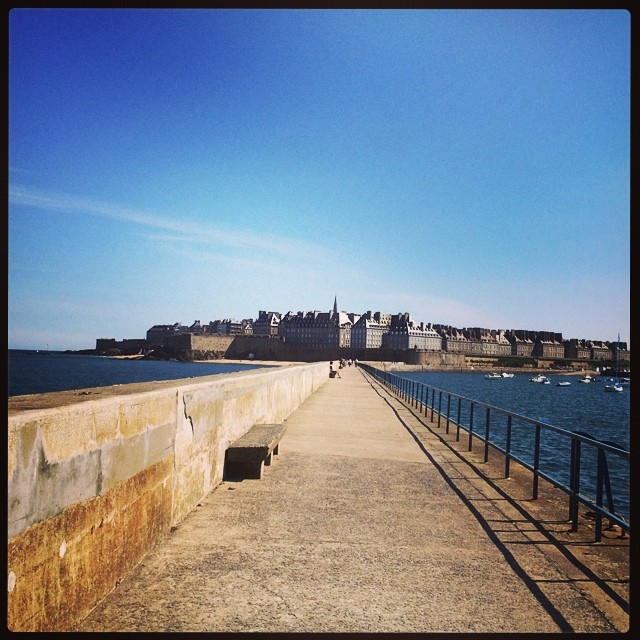 Il fait beau, il fait chaud. Je pars à la recherche de Jacques Cartier et de Bobby Surcouf sans galure ni protection. Après quelques heures de marche gaillarde, il faut me rendre à l’évidence. Surcouf ne ressemble en rien à Gérard Barray mais damn’ voilà que la voix éraillée de Richard Cocciante me trottine dans la tête. Le soleil malouin a eu raison de moi. Et bien sûr, je n’ai qu’une envie, me tremper les petons dans l’eau en courant au ralenti sur la plage. Je résiste à la seconde tentation. Trop de courageux ont eu la même idée.
