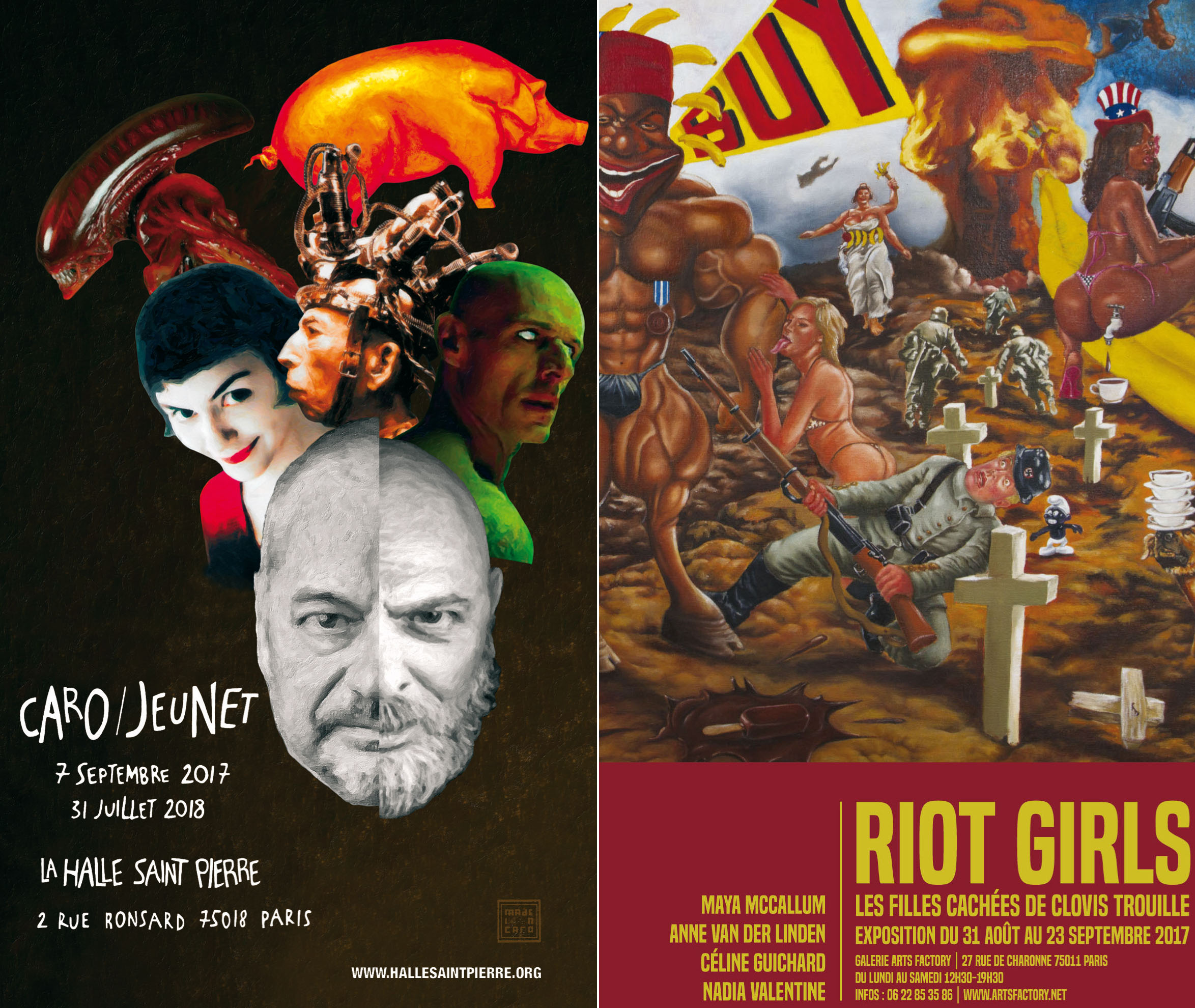 Hors les murs, vous pourrez retrouver le duo Caro & Jeunet à la Halle Saint Pierre pour une exposition-rétrospective du 7 septembre 2017 au 31 juillet 2018 et les filles cachées de Clovis Trouille — soit Maya McCallum, Anne Van der Linden, Céline Guichard & Nadia Valentine — pour l’exposition Riot girls à la galerie Arts Factory jusqu’au 23 septembre 2017.