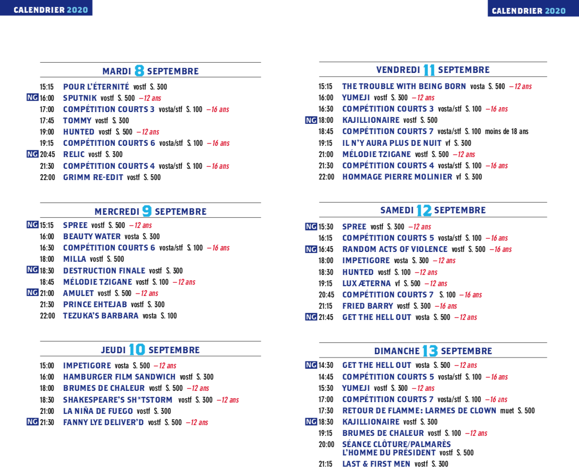 A noter que les ventes en ligne sont déjà ouvertes et qu’il vous est vivement recommandé d’y réserver vos billets pour éviter attroupements et queues infernales. Rappelons-nous qu’il est important que l’angoisse envahisse l’écran et non les salles.