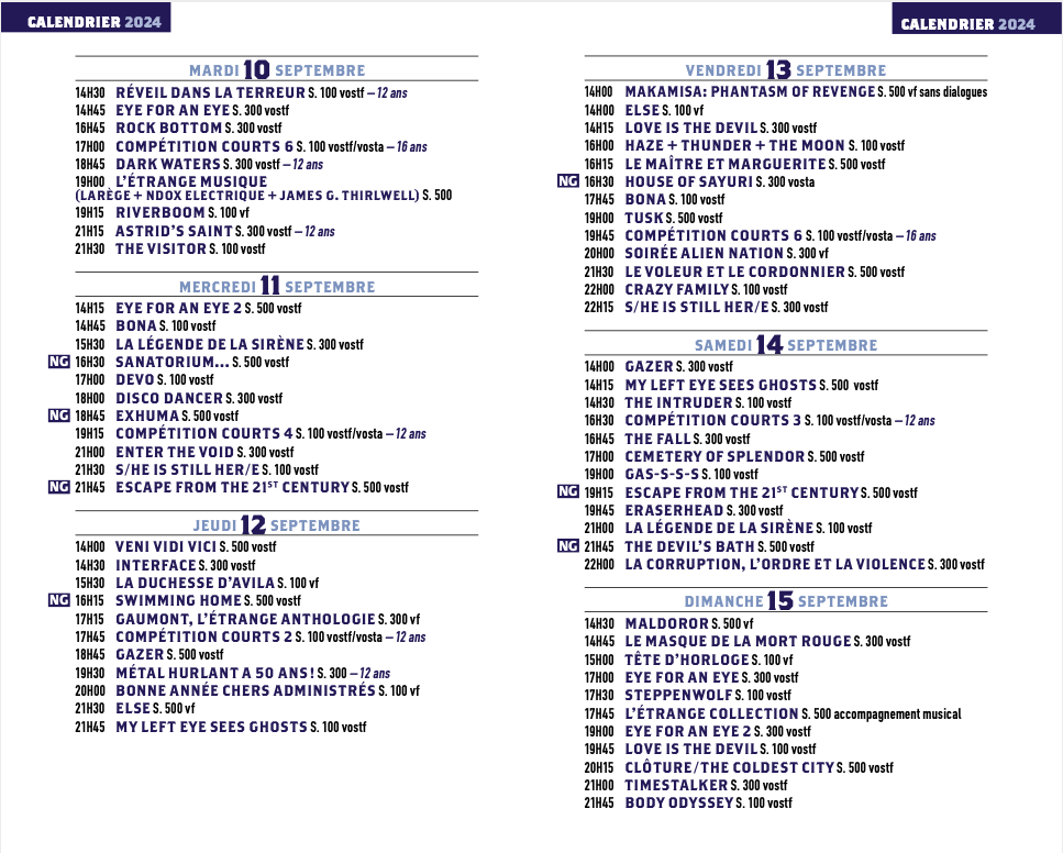 Vous pouvez télécharger directement le catalogue*** sur la page d’accueil du site de l’Étrange Festival et ainsi avoir accès à tous les détails sur la programmation, la billetterie et la liste complète des invité(e)s.