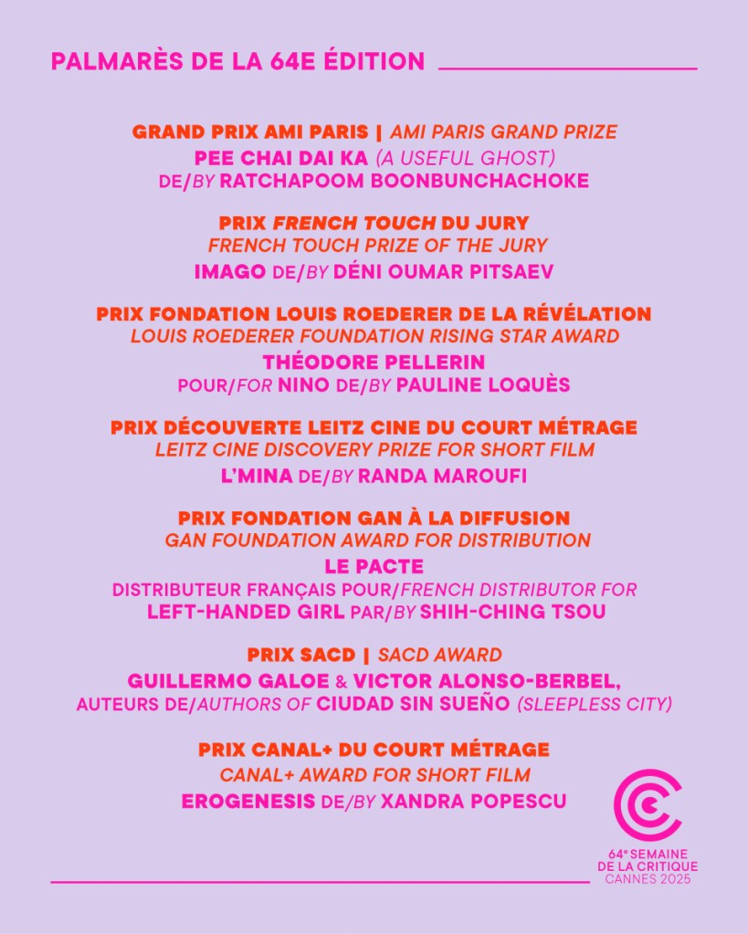 Palmarès* de la 64ᵉ Semaine de la Critique