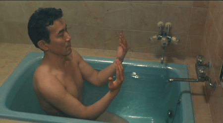 C’est le premier bain solitaire que Yamashita/Kôji Yakusho prend depuis des années. Il vient de sortir de prison. La baignoire est celle de son « contrôleur judiciaire », un bonze qui a subodoré en ce prisonnier modèle une bonne âme récalcitrante devant toute forme de rédemption.