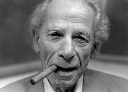 Action ! Deauville, 8 septembre 1985.Samuel Fuller tente de conserver son cigare allumé devant la caméra de Gérard Courant, sans se départir de sa superbe ou sortir son revolver.